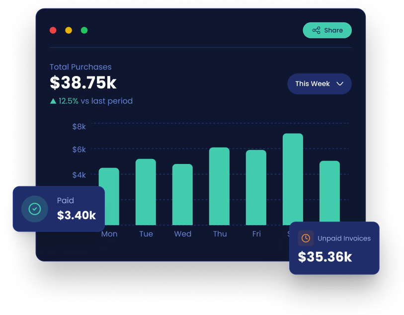 Track paid/unpaid status, supplier relationships, spending trends, and patterns across your entire organization.